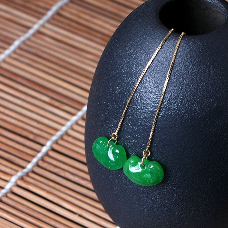 LouLeur 100% 14K gold Emerald earrings handmade DIY natural green Emerald peace lock drop earrings for women charms jewelry