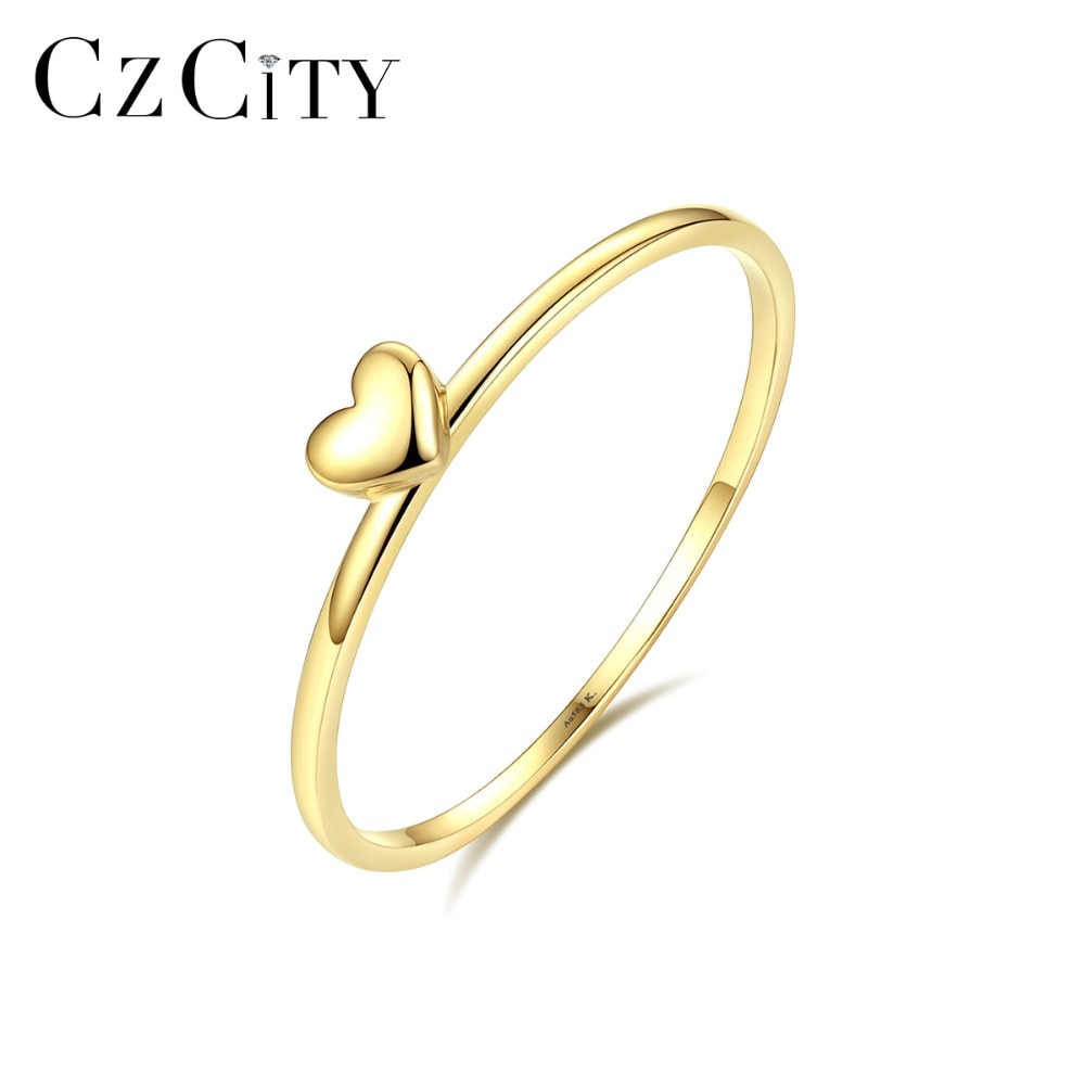 CZCITY Classic Pure 14K Gold Heart Wedding Rings for Women Thin Round Romantic Female Rings Yellow Gold Jewelry Carving Au585
